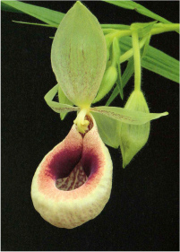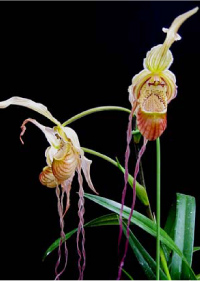 パフィオペディラムの仲間は世界中にあります。中南米に分布するフラグミペディウム(Phragmipedium)、セレニペディウム(Selenipedium)ばかりでなく、東アジアからヨーロッパ、北米にかけて分布するシプリペディウム(Cypripedium)も近戚関係の属です。これは日本にもあるクマガイソウ(Cyp. japonicum)、アツモリソウ(Cyp.macranthum)と同じです。