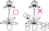 パフィオペディラムは水が好きだとよく言われますが、それと同じくらい乾燥も好きで、なおかつ植え替え好きです。それは地生ランであることと関連しています。水捌けと水保ち、その両方に考慮した植え込み材選びが肝要で、常に湿っているような材料はむしろダメなのです。その上で思い切った通水作業ができるように環境を整えることも忘れずに。鉢にたっぷり水を通した後は、適度な陽と風に当て、早く乾かすことに留意します。